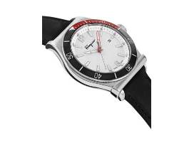 From the 1898 Sport Collection. This stainless steel and leather strap analog watch features a silver guilloché dial.