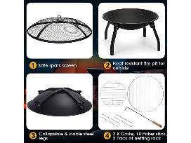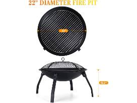 Fire Pit, 22in Foldable Wood Burning Fire Pits for Outside, FirePit with Carry Bag, Spark Screen & Poker, Pack Grill, Folding Legs for Camping, Picnic, Bonfire