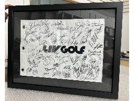 - A framed LIV Golf pin flag signed by all participating players - a collector's dream