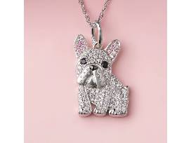 Meet Our French Bulldog Necklace: high quality necklace with rhodium and gunmetal-plated sterling silver, a keepsake you'll treasure. Genuine Black Spinel gemstones emulate the French Bulldog's expressive eyes. Sparkling White and Champagne Cubic Zirconia define the details of the nose and the Frenchie's distinctive trademark ears.