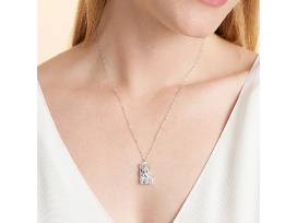 Measuring 0.82 (h) x 0.51 (w) inches, the pendant comes on an 18" rope chain with a 2" extension and is secured with a lobster clasp.