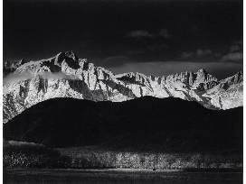 This photograph is considered one of Ansel Adams finest works, showcasing his mastery of chiaroscuro-the contrast between light and shadow He captured Winter Sunrise, Sierra Nevada, From Lone Pine in 1944, during a frigid morning when he was photographing the Manzanar relocation camp2. He had spent several days waiting for the perfect sunrise, battling heavy cloud cover before finally witnessing the dramatic interplay of light and shadow he had envisioned,
