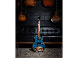 The guitar has been custom-wrapped in event artwork and is signed by all artists!