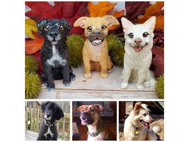 From the artist: "Handmade in the USA! If you are looking for a custom pet sculpture for a cake topper, pet memorial, or a unique gift, I would love to help you create your special project. High-quality polymer clay is blended for each new project to the exact colors of your pet, then lovingly sculpted by hand with careful attention to detail."