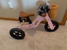 KRIDDO Kids Wooden Tricycle with Adjustable Seat for 1-4 Years & Pink Helmet. Local Pick-Up Only - No Shipping.
