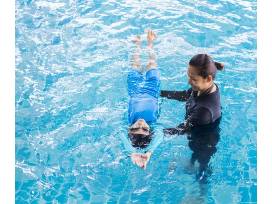 These lessons will increase the participant's comfort with underwater exploration and introduces basic self-rescue skills performed with assistance. Students learn personal water safety and achieve basic swimming competency by learning benchmark skills: Swim, float, swim, front glide, roll, exit, jump, push, turn, and grab.