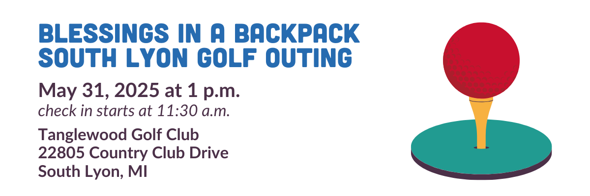 We hope you will join us on Saturday, May 31, at Tanglewood Golf Club for the 2025 Blessings in a Backpack South Lyon Golf Outing where all proceeds go directly to purchasing food for the students in our program.