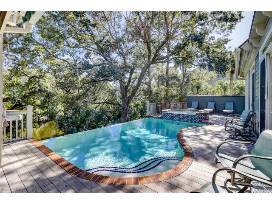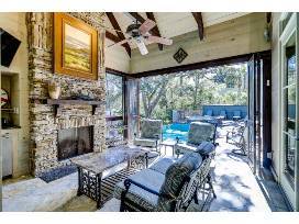 The 5000 square foot property includes a screened porch with a stone fireplace, a steam bath, two laundry rooms, beautiful but comfortable furnishings, and a gourmet kitchen with a six burner Viking Range and dining space for 10 guests.