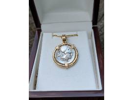 This exquisite necklace features an authentic 4th century BC ancient Greek coin, hand-struck and entirely unique. On one side, the legendary Pegasus takes flight; on the reverse, the powerful image of Athena, goddess of wisdom and war.
