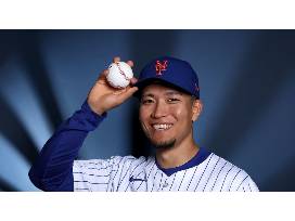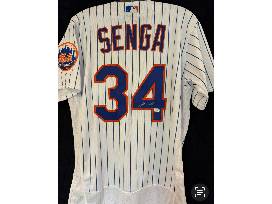 Framed Signed NY Mets Pitcher Kodai Senga jersey.