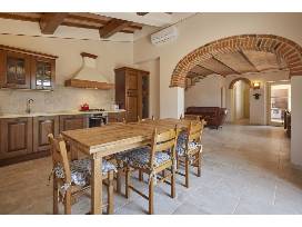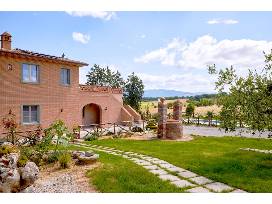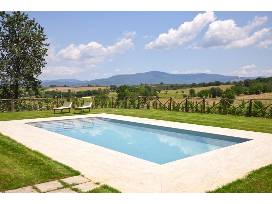 This villa perfectly combines modern amenities with the rustic charm of the Tuscan countryside. Designed to accommodate up to six guests, the villa boasts three spacious bedrooms and three bathrooms, ensuring both comfort and privacy. Spend your days soaking up the sun on the expansive terrace, where you can marvel at the breathtaking views of the Chiana Valley and the ancient hill town of Cortona in the distance. The villa's outdoor oasis includes a sparkling pool and lush, green gardens, creating the ideal setting for relaxation or a peaceful afternoon with a good book. This enchanting retreat offers a serene and picturesque backdrop for an unforgettable Tuscan vacation.