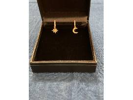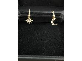 14K Gold & Diamond Hoops with Dangling Diamond Star & Diamond Moon