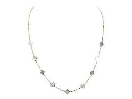 Alhambra Mother of Pearl necklace set in 14K gold, with 14K gold chain