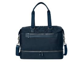 Perfect for those with a fast-paced lifestyle, this spacious duffel bag is expertly designed for spontaneous weekend adventures and spur-of-the-moment road trips. Crafted from durable 500D x 750D polyester with a knitted fabric backing, this bag features a stylish 420D polyester lining and luxurious genuine leather trim and details. The front zippered pocket allows for easy decoration access, while the zippered main compartment includes an interior slip pocket and zippered pocket for organization on the go. In addition to a zippered shoe compartment at the base, this duffel also boasts a dedicated padded laptop compartment for added convenience. Carry it with ease using the double leather-wrapped web handles or the removable, adjustable shoulder strap with shoulder pad. The leather feet at the base ensure durability and protection for all your belongings.
