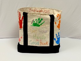 Take home this adorable canvas book bag decorated with colorful handprints from Mrs. Smith's second grade class - a sweet and meaningful keepsake you'll cherish for years.