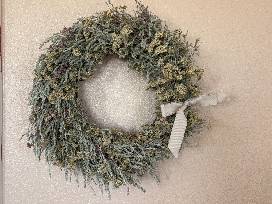 Handcrafted using locally sourced flowers by Mrs. Revels, these stunning wreaths are perfect for your decor. One features an 18-inch arrangement of White Yarrow, Indian Paintbrush, June Grass, and Strawflowers, while the other is a 25-inch wreath made with Wild Sage, White Yarrow, and Hummingbird Mint. These beautiful creations are wonderful additions to any setting.