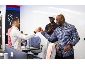 Join Houston Texans Head Coach DeMeco Ryans for an unforgettable experience at NRG Stadium. You and three guests will have the unique opportunity to participate in an exclusive film breakdown session with Coach Ryans, gaining rare insights into NFL game strategy and team dynamics. Enjoy lunch at the Texans Cafe, followed by an engaging discussion with Executive Vice President and General Manager Nick Caserio about his approach to building the Houston Texans roster.