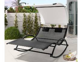 The Rocking Gloversville 63.7" Double Chaise Lounge Chair provides fantastic comfort and coziness for you. The ergonomic curved shape matches with two soft headrests to make a unique appearance and super comfortable. Durable frame and all-weather fabric are sure to be reliable patio furniture for your home. It's equipped with a polyester canopy to block UV rays when you read a book or take a nap.