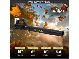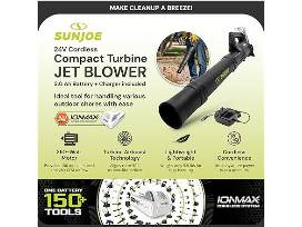 The Sun Joe 24-Volt IONMAX Jet Leaf Blower is the ultimate solution for quick, efficient cleanups with the convenience of cordless freedom. Lightweight at just 4 lbs, this compact blower offers easy handling and exceptional power in one sleek package. Powered by Sun Joe's advanced 24-Volt IONMAX system, the included 2.0 battery. The powerful 350-watt motor generates a remarkable 100 mph airspeed and up to 280 CFM of airflow, delivering the performance you need for swift, effective cleanups on your porch, patio, deck, walkway, or garage. The innovative Turbine AirBoost Technology aligns the rotor at a 90-degree angle, allowing air to be propelled forward with more force, similar to the turbine jet engine of an airplane. Rechargeable 24V lithium-ion battery fully charges in just 30 minutes, offering quick recharges for continuous, on-the-go use without delays.