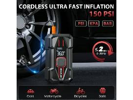 SUPER FAST INFLATION - The car battery charger jump starter equipped with an 150PSI digital air compressor that can inflate a typical car tire to 20 PSI in just 3 minutes, 2 time faster than others. Additionally, the features real-time tire pressure detection and an auto shut-off function when the set PSI is reached. The set also includes an extension air hose and 3 different nozzles, allowing you to inflate cars, bikes, balls, mattresses, pool floats, etc.