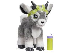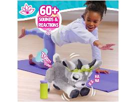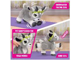 Namastaaay all the way to zen levels of fun with the furReal Daisy the Yoga Goat interactive plush toy. This lifelike, interactive toy goat features over 60 sound and motion combinations. To begin play, flip the switch on her belly and pet Daisy's back. She giggles and bleats cute yoga phrases, like "Ohmmm..." Keep petting her back to watch Daisy perform downward dog and bird dog poses. Sometimes she'll even toot during a pose - just like real yogis! After playtime, give her a drink from the play water bottle to hear fun gurgling sounds. Then press and hold Daisy's back for 3 seconds for Meditation mode. Hear soothing music and deep, cleansing breaths. Featuring super-soft gray plush fur, this 11.4-inch goat plushie wears an adorable green head wrap. Daisy is sure to be a favorite in any collection of stuffed animals and furReal pets (sold separately).