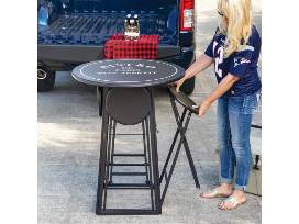 The table and stools fold neatly into a slim profile-collapsing to just 5 inches deep-making storage simple and convenient. The removable tabletop adds flexibility and ease when packing away or transporting. When folded, the unit measures 5"W x 31"D x 41"T, allowing it to tuck easily into closets, garages, or vehicles.