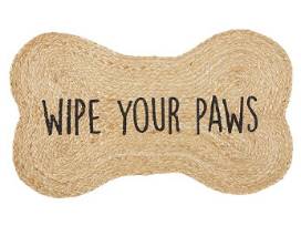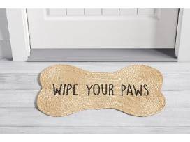 Tell your fancy-footed guests and furry friends to keep the floors clean with this Wipe Your Paws door mat. This bone-shaped door mat is made of braided jute. This low-pile mat can be used both indoors and outside.