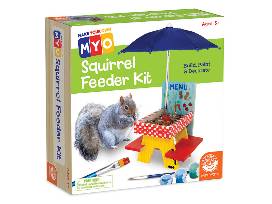 Make Your Own Squirrel Feeder includes everything you need to assemble, paint and decorate a unique decoration for backyards, patios and other outdoor spaces. Includes 1 feeder tabletop, 2 bench seats, 2 table legs, 1 mounting board, 1 umbrella, 12 paint pots, craft glue, flat edge paintbrush, tapered paintbrush, sponge brush and guidebook