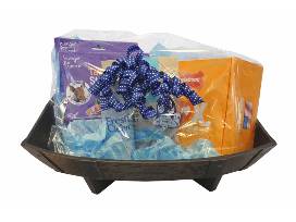 Spoil a special pup with a basket full of treats, play, and personality! This dog-themed gift basket includes a tasty assortment of treats, refreshing dog cologne, a Nylabone box for chewing fun, adorable pet buttons and the Hungry for Words Talking Starter Kit for Dogs, an interactive way to help dogs "talk" using buttons-perfect for curious pups and pet parents who love enrichment and training. A fun, thoughtful gift for any dog lover and their four-legged best friend!