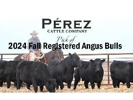 Perez Cattle Company out of Nara Visa, NM is offering the pick of their fall 2024 Registered Angus Bulls. This calf crop is out of AI Sires Basin True Grit 1021 and Hoffman High Road 9961 and cleaned up with SITZ Barricade 637J, McCurry Justified 0198 and McCurry Confederate 1190. Visit PerezCattleCo.com for more info about our program. Bull must be selected by December 1.