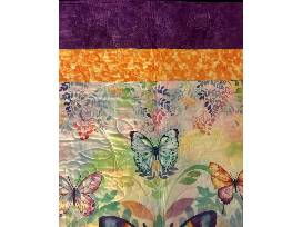 This beautiful handmade quilt would be a great addition to a bedroom or living area! This quilt is filled with colorful butterflies and bordered with purple and yellow-gold. It is medium weight and soft to the touch.