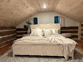 Virgin River - in real life! This is your chance to getaway on the Blue Ridge Parkway. This package includes 2 little cabins in the woods, decorated and designed personally by Leanne Ford of HGTV fame. Spend the peak week of fall (October 13th, 2025 - 19th, 2025) with friends or family in these cabins located on 12 acres of land. There is also a one acre pond with kayaks and a beautifully lit firepit area for socializing. They are located a little over 2 hours from the Triangle Area in Fancy Gap Area and only 6 miles for the Blue Ridge Mountain Music Center. There are several area wineries within a 20 mile radius.