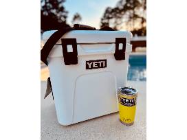 Get Ready for Summer with your new cooler, tumbler and speaker! Enjoy the warm weather and prop your feet up on this perfectly sized portable hard cooler - the Yeti Roadie 24! This popular Yeti cooler features a one finger quick latch design and a never fail hinge system. The internal height of the cooler can accommodate standard wine bottles and 2L sodas. Pack it down with ice and sip the summer away with the included 20oz Yeti Rambler Tumbler. Take the Turtlebox Bluetooth speaker with you to the beach, the lake, or wherever you need music.