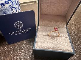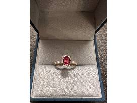 This 18k gold ring was custom designed for the Leukemia and Lymphoma Society by jeweler Ron Lodholz. It has a natural red spinel center(.81cts) that is surrounded by diamonds(.43cts). This is a one-of-kind piece ! This ring is a size 6.5 but can be resized for the winner.