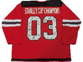 Enjoy a custom Devils-style jersey that has been hand-signed by most members of the 2003 New Jersey Devils Stanley Cup Team!