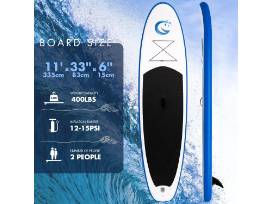 The new ultra light grade double wall PVC is 35% lighter than similar size products , with excellent wear resistance, toughness and long service life. The inflatable paddleboards standard size is 11'x 33" x 6 ", carrying 400 pounds.