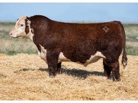 Initiative: A bold new step. Bar Star's selection from the February 2025 record breaking Topp Herefords sale. His maternally stacked pedigree combined with massive skeletal width, incredible masculinity with a herd bull head that has correct eye set, great color and markings, big feet with square toes, and elite carcass numbers (125 IMF ratio) made it an easy choice to add to our herd bull battery. He's as wide pinned and square behind as any Hereford bull we have ever seen. The Innovation daughters are making tremendous, perfectly uddered cows at Topp's and Innovation semen is not available on the open market. Semen on this sale will be the only semen sold from 4/22/25 through the remainder of the spring breeding season on Initiative.