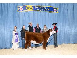 Tomahawk hit the seen running as he was crowned Junior Bull Calf Champion at the 2023 NWSS and was very popular among the spectators. He then went on to be a feature in the Jensen Ranch Annual Bull Sale that spring and was purchased by Moore Cattle Co. in Madill, OK. His progeny have captivated the public an commanded top dollar. This past fall in the Jensen Ranch "The Chosen Sale" 7 direct daughters of Tomahawk averaged $31,285. The feature was the lot 8 commanding $75,000 to Colyer Herefords and GKB Cattle. LAST SEMEN BEING OFFERED THIS SPRING!