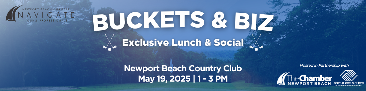 You're invited to Navigate: Buckets & Biz hosted in partnership with Boys & Girls Clubs of Central Orange Coast and Newport Beach Chamber of Commerce. This exclusive lunch event at the Newport Beach Country Club gains you access to network with other local young professionals and an invitation only opportunity to hit a bucket of balls at the NBCC Driving Range*. The event features a special keynote message from Boys & Girls Club CEO, Robert Santana!