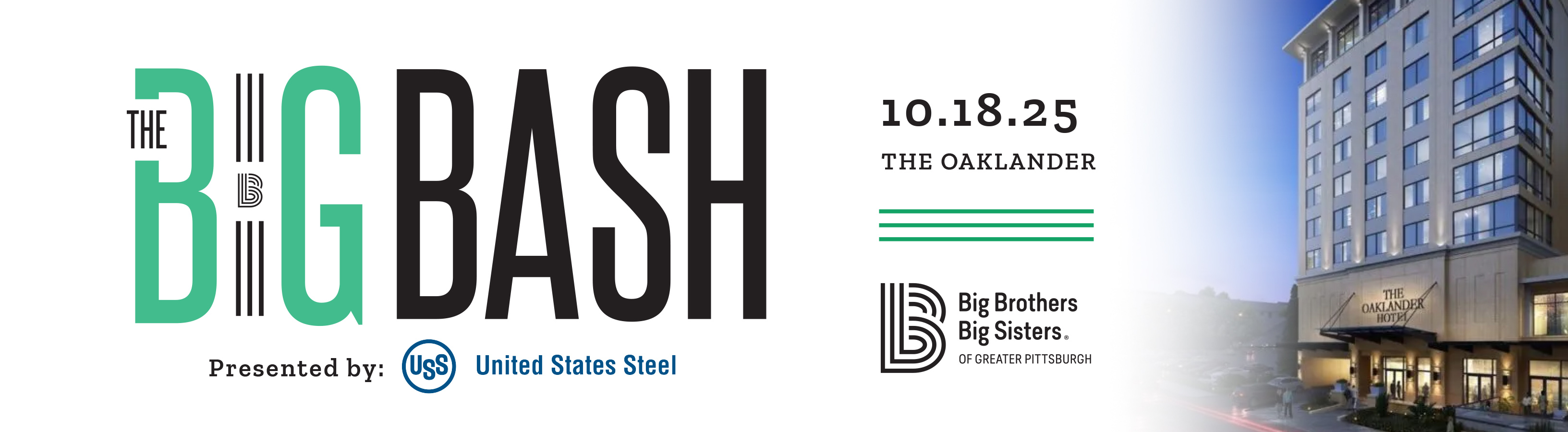Big Brothers Big Sisters of Greater Pittsburgh invites you to join us on October 18th, 2025 at The Oaklander for the most exciting event of the year - The BIG Bash! Guests will be surrounded by panoramic views of iconic Pittsburgh landmarks while they dance the night away, enjoying cocktails, delicious bites, an expansive silent auction, and surprises that will make it an unforgettable evening.