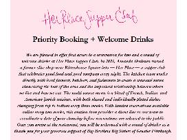 Her Place: Certificate provides first access to limited reservations and welcome drinks, tasting menu additional cost.