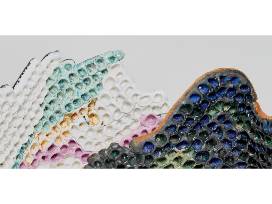 Parry originally started working in banking in New York City and applied to Alfred University in 1938. Parry started as an engineering major in the ceramics engineering program, switching to studio arts later. Parry spent most of his career as professor at Alfred University, teaching alongside ceramic artists Val Cushing, Daniel Rhodes, Robert Turner, and Ted Randall. This Large raku-fired honeycomb sculpture is White stoneware with copper oxide slip was part of William Daley's collection and was donated by his family.