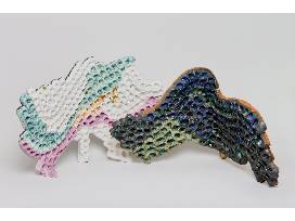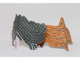 William Parry is known for abstract, slab-built sculptures, as well as experimentations with ceramics and other materials. Some of Parry's work was inspired by natural forms, such as the Off Butterfly series, and from everyday objects, seen in the Knife, Fork, and Spoon series which transformed these objects into unusable sculptures. Parry often brushes applied stains or glazes to his sculptures in one solid coat.