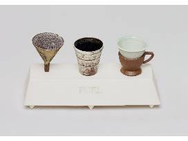 I strive to combine objects and forms from the diverse culture and society in which I live, the United States of America in the 21st century. Initially, this approach resulted in vessels derived from street trash such as mufflers and styrofoam cups, buoy forms on the Delaware River, and the urban architecture of Philadelphia. I am conscious of the connecting threads that link the many disparate elements of history, culture, and what it is to be human.