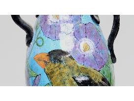 This large vessel brings a burst of vibrant colors into any space, lighting it up with images of flora and fauna. Perfect for holding larger plants or simply brightening a space.
