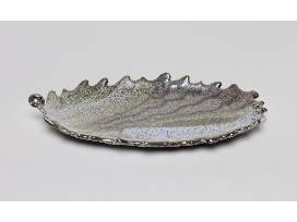 This abstract leaf form platter is beautiful and has an elegant glaze. It could be used as a table centerpiece or hung on the wall, lending a reminder of the hand made and the natural world to your home.