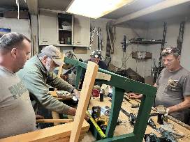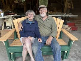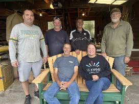 This one-of-a-kind gliding bench is more than a beautiful piece of outdoor furniture - it's a labor of love, teamwork, and hope. Guests Jason, Leo, and Mark from St. John's Ministries worked side by side with longtime supporters Myron and Carol at their Door County home to bring this bench to life.