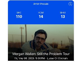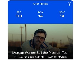 2 Prime Tickets in Sec 110, Row 14 to see Morgan Wallen in Indianapolis at Lucas Oil Stadium