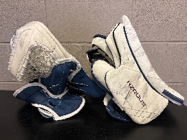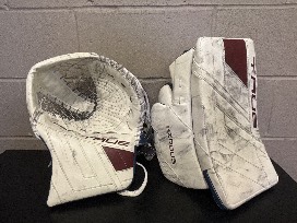 Colorado Avalanche Mackenzie Blackwood Used Goalie Glove and Blocker Set. Bag included.