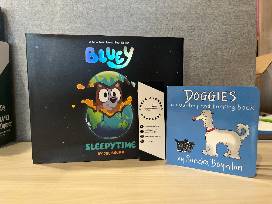 Start your LO's bedtime routine with a relaxing bath using Tubby Todd Bath Co. items from their newborn gift set. Finish off the night by curling up with stuffy puppy and reading a few books from Three Avenues Bookshop.
